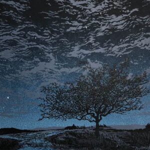 ‘After The Rain’ is the sister print to ‘Under The Stars’. This was the first of the two prints, the remaining lino after carving the sky reduction becomming the clouds in ‘Under The Stars’.